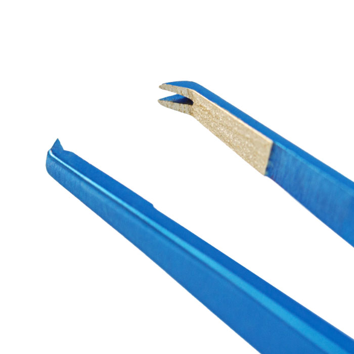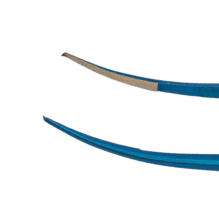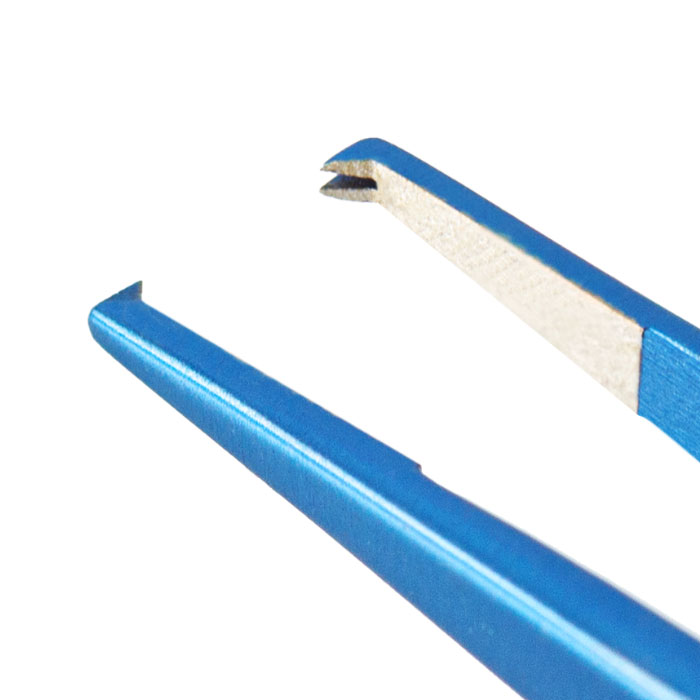 Overall length 98 mm, 3.9 inches - Angled 45 degree - Tips 0.3 mm wide - 1x2 teeth, 0.12 mm high - TC teeth and platforms - 6.0 mm tying platform - Flat handle 7 mm wide |