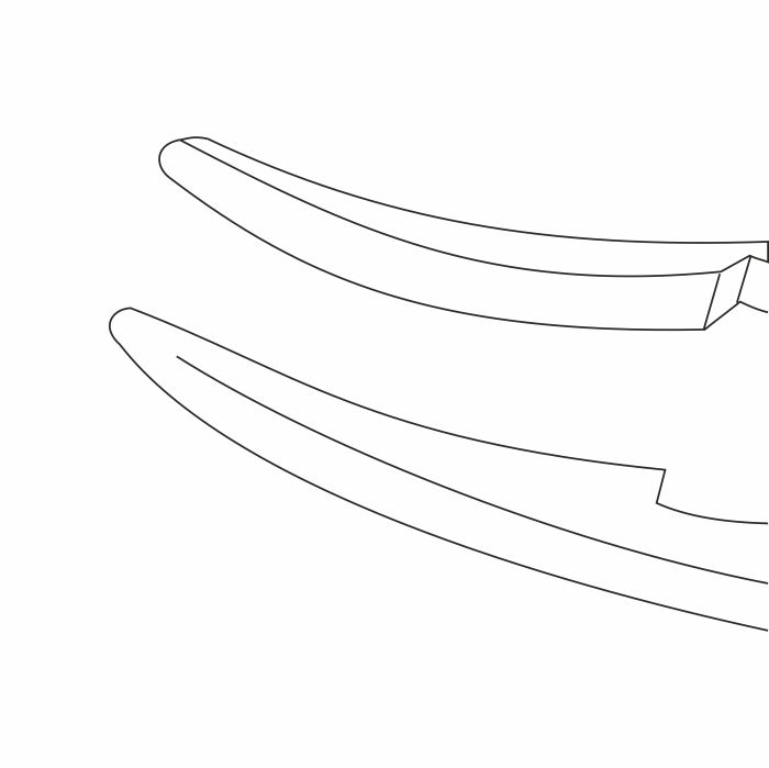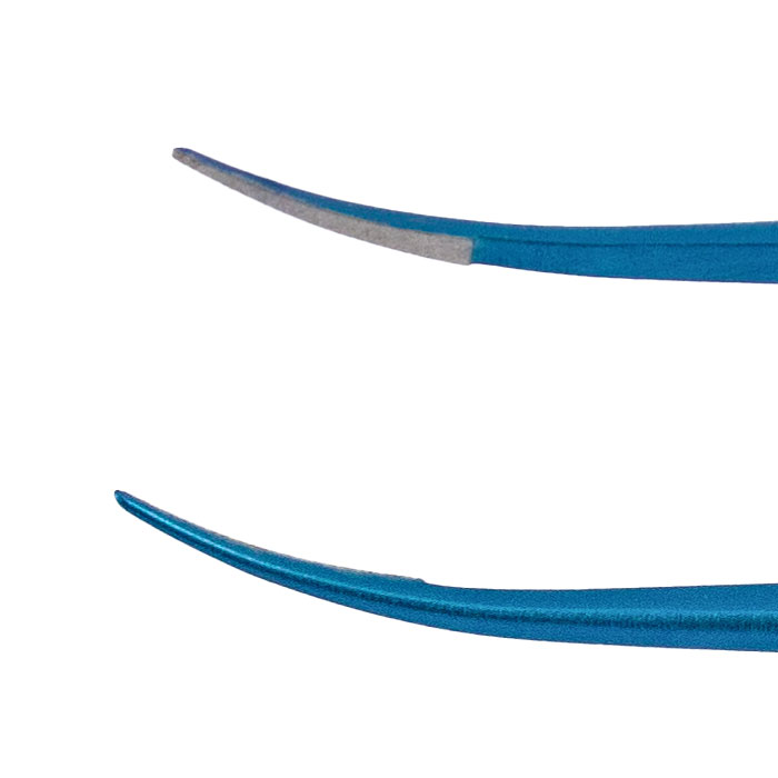 Overall length 98 mm, 3.9 inches - Angled at 45° - TC platforms - 4 mm tying platforms - Flat handle 7 mm wide - Tips 0.3 mm wide |