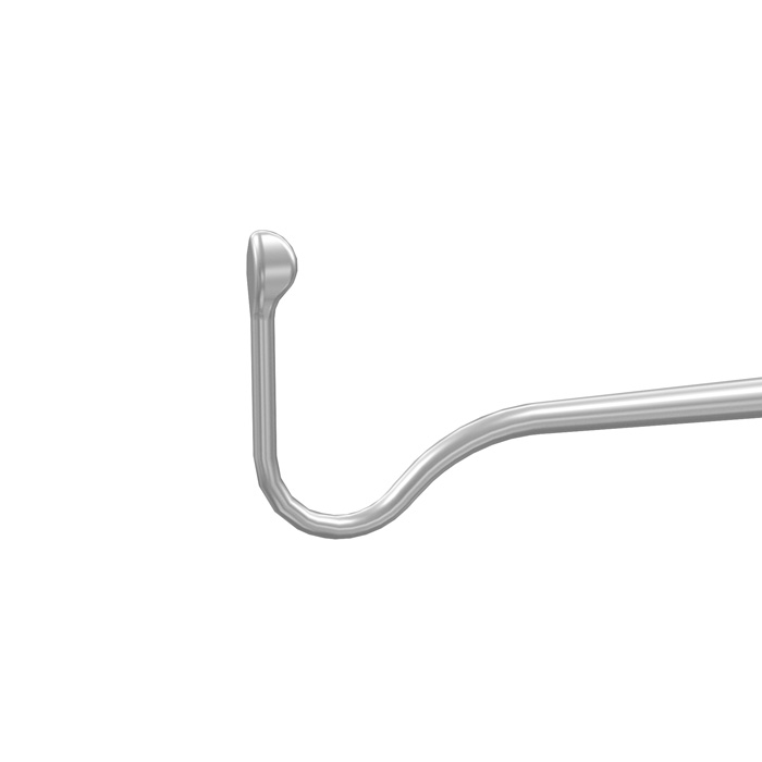 Overall length 130 mm, 5.1 inches - Flat working part 10 mm long with hole - Round titanium handle 6 mm dia |