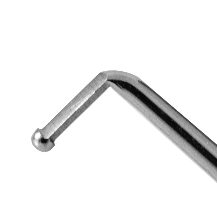 Overall length 120 mm, 4.7 inches - 45°angled working part tip to angle length 12 mm - Round titanium handle 5 mm dia |