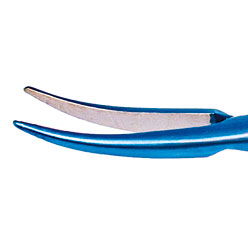 Overall length: 135 mm, 5.3 inches Working part: fine, curved, 12 mm long, 0.4 mm wide Handle: round, titanium, Ø8 mm |